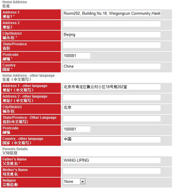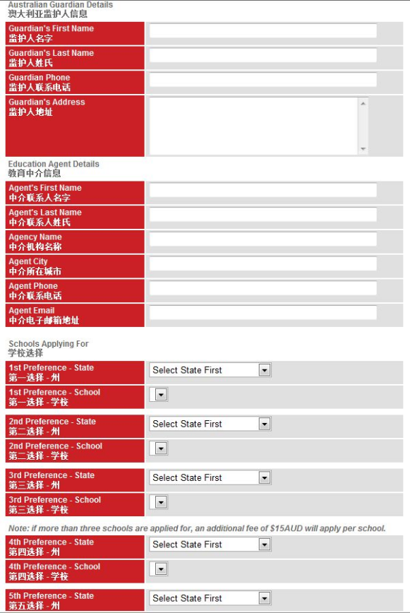注意:下面的监护人信息,教育中介信息,教育中介信息,学校选择不是必填项,均可先不填。