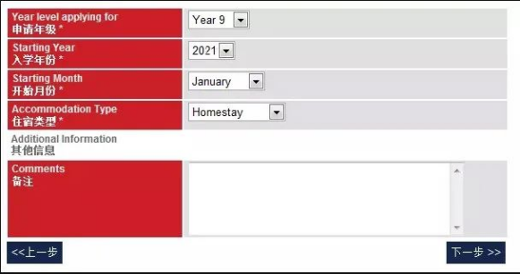下方的申请年级,入学年份,开始月份,住宿类型都是必填项