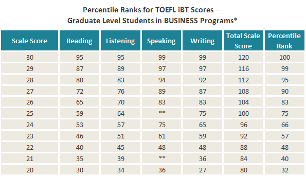 出国读商科硕士群体托福分数百分等级对照表